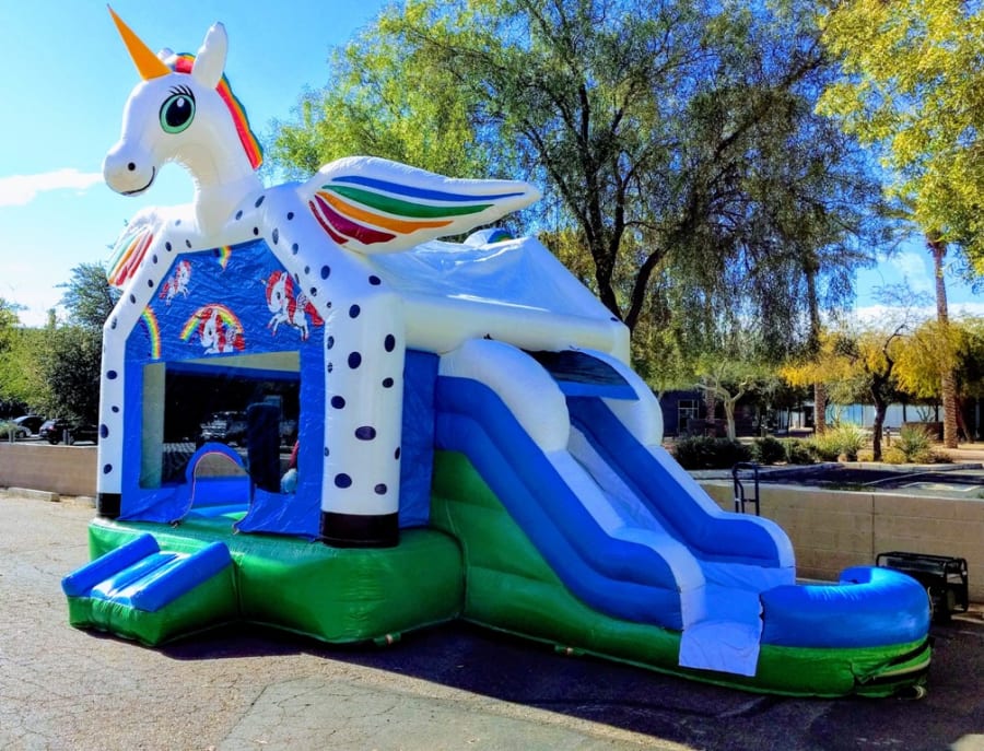 Awesome Unicorn Bounce and Slide Combo with play structures inside!