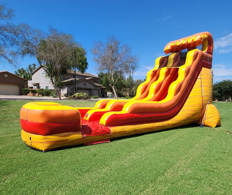 Looking for waterslide rental Lava Monster in Gilbert, Mesa, Chandler, Queen Creek, Tempe, San Tan? Our reliable delivery service ensures that your inflatable slide arrives on time and is set up safely, no matter where your event is located within these areas. We pride ourselves on outstanding customer service and making every rental experience hassle-free.