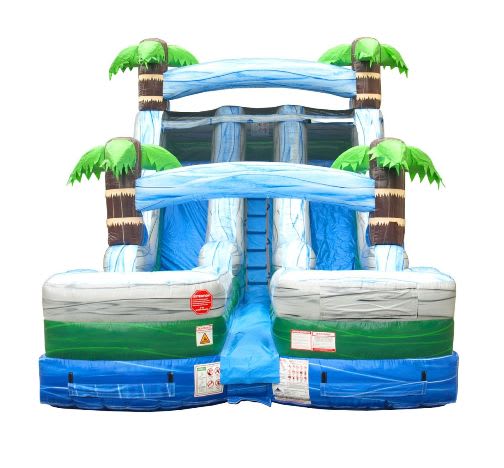 Looking for an unforgettable way to beat the Arizona heat? The Island Palms package is the perfect choice for families, parties, and events of all sizes. This tropical double lane waterslide brings a splash of excitement to any occasion, providing hours of entertainment for guests of all ages. Whether you're hosting a birthday party, neighborhood get-together, or corporate event, this inflatable waterslide guarantees a cool and thrilling experience.
